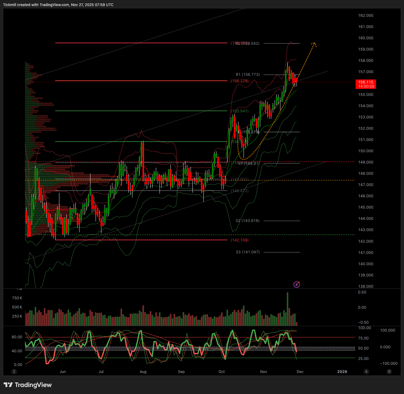 Below 155.25 Target 153.50