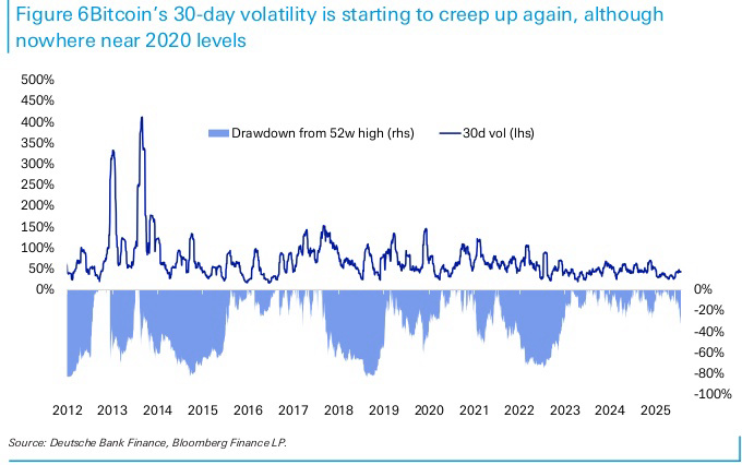 Correlation: Bitcoin's correlation with the Nasdaq 100 (46%) and S&P 500 (42%) has risen sharply, mirroring levels seen during the 2022 COVID stress.