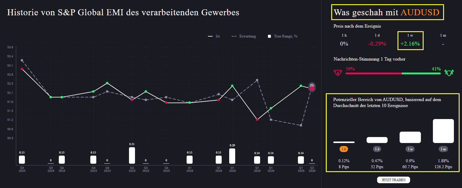 Besonders kritisch sind die Einkaufsmanager-Daten aus den USA. Ein Wert unter 50 im Dienstleistungssektor könnte als Frühwarnsignal für eine Abschwächung interpretiert werden. Werte darüber sollten die positive Marktstimmung unterstützen.