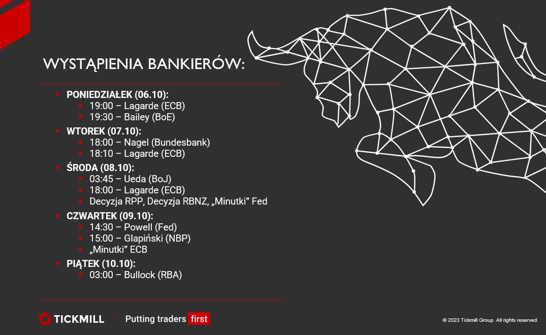 W tym tygodniu nie ma natomiast wielu ważnych publikacji makroekonomicznych, które mogłyby wstrząsnąć rynkami finansowymi. Jest za to dużo wystąpień bankierów centralnych. Nie jest wykluczone, że to właśnie ich słowa staną się obok wspomnianej polityki, ważnym drogowskazem dla inwestorów.