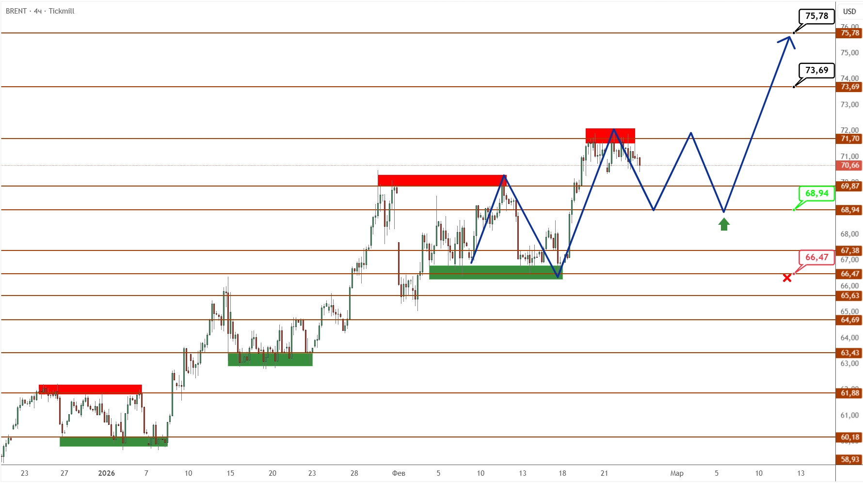 Сигналом отмены этого сценария будет пробой поддержки и устойчивое движение в район ниже разворотного уровня на 66,47.