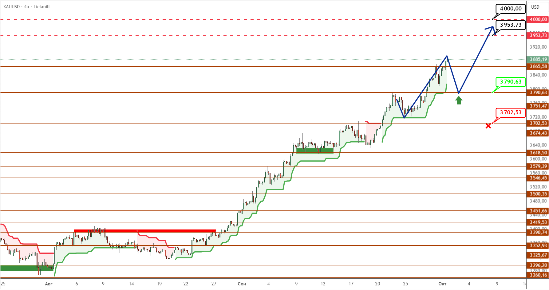 Сигналом отмены текущего сценария станет пробой поддержки и дальнейший уход в район ниже разворотного уровня на 3702.
