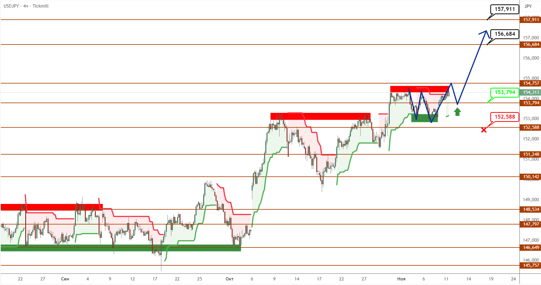 Сигнал на отмену текущего сценария будет получен в случае пробоя поддержки и дальнейшего ухода цены ниже разворотного уровня на 152,58.